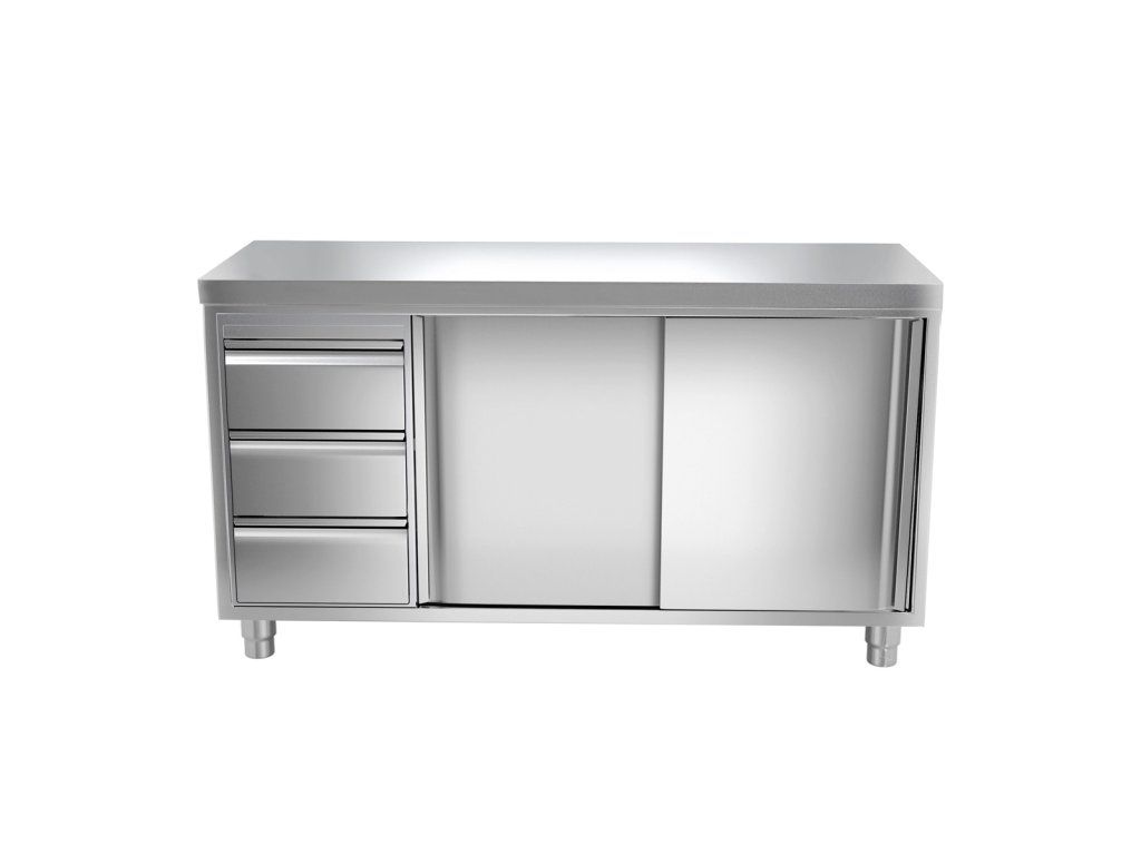 Szafka robocza PREMIUM ze stali nierdzewnej - 1600x600 mm - z 3 szufladami po lewej stronie bez panelu tylnego