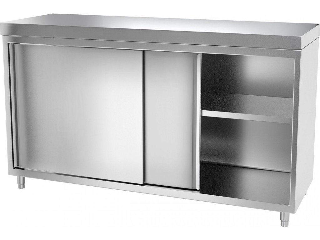 Szafka robocza PREMIUM ze stali nierdzewnej - 1600x700 mm - z drzwiami przesuwnymi bez panelu tylnego