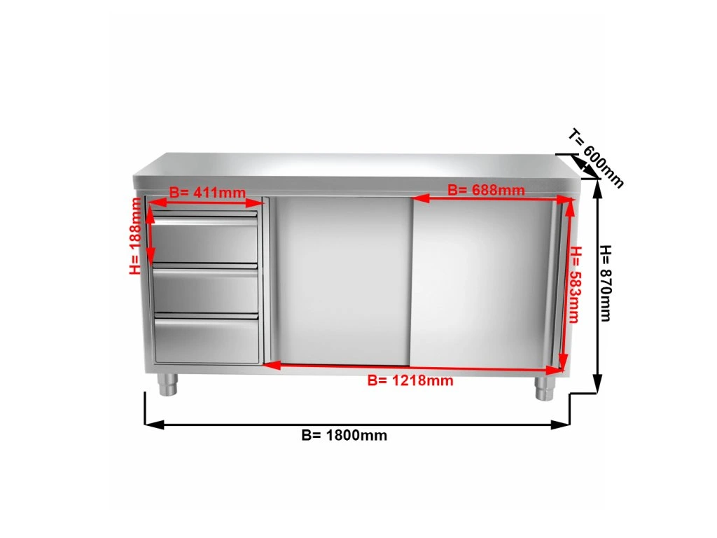 - Obudowa, szuflady i drzwi wykonane z wysokiej jakości AISI 304