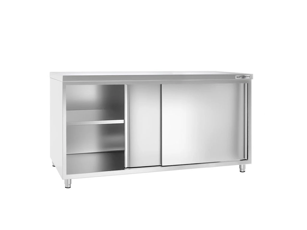 Szafka robocza PREMIUM ze stali nierdzewnej - 1800x600 mm - z drzwiami przesuwnymi bez panelu tylnego