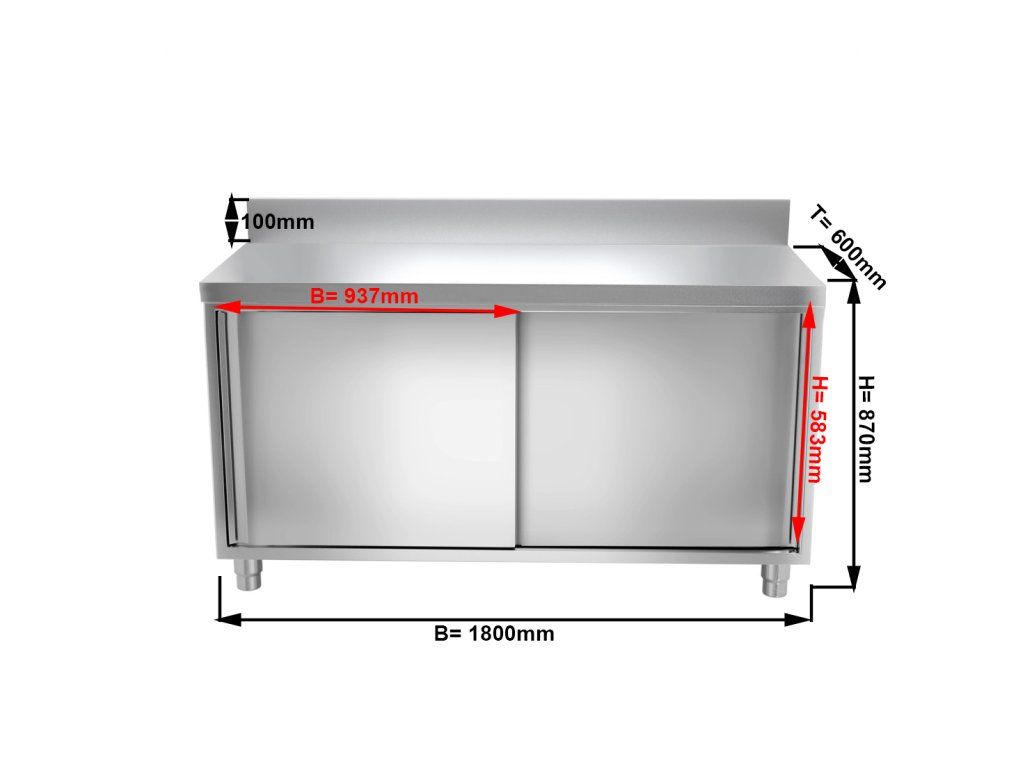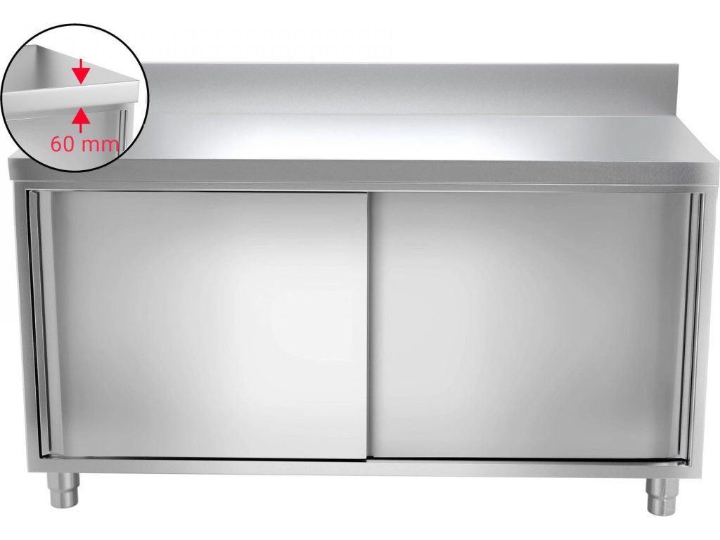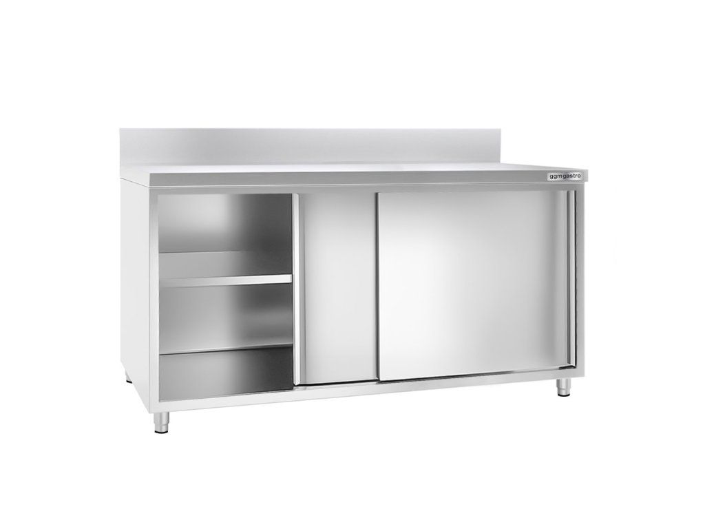 Szafka robocza PREMIUM ze stali nierdzewnej - 1800x600 mm - z przesuwanymi drzwiami & panelem tylnym