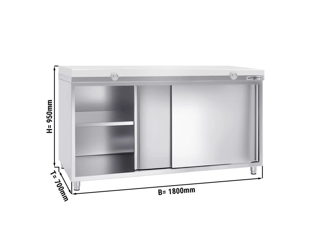 Szafka robocza PREMIUM ze stali nierdzewnej - 1800x700 mm - z drzwiami przesuwnymi bez panelu tylnego, włącznie z płytą do cięcia