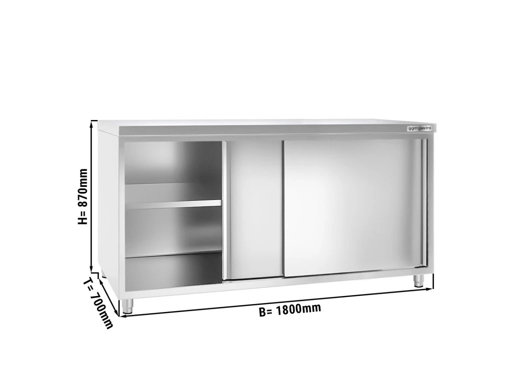 Szafka robocza PREMIUM ze stali nierdzewnej - 1800x700 mm - z drzwiami przesuwnymi bez panelu tylnego