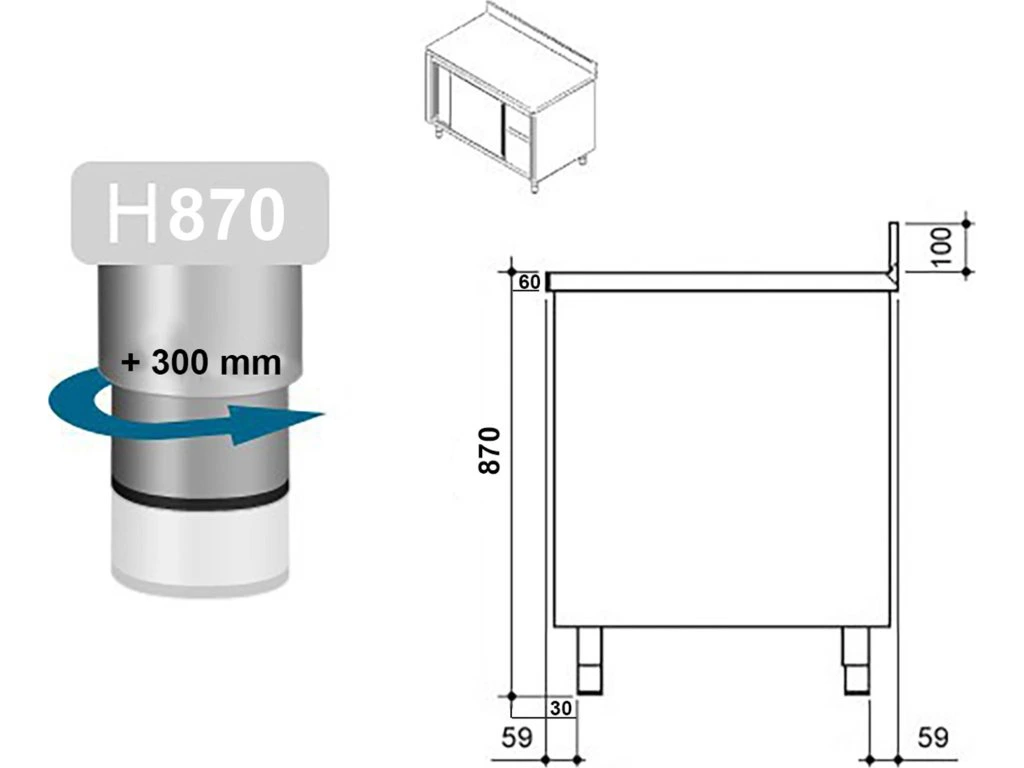 - Nóżki ze stali nierdzewnej o regulowanej wysokości
