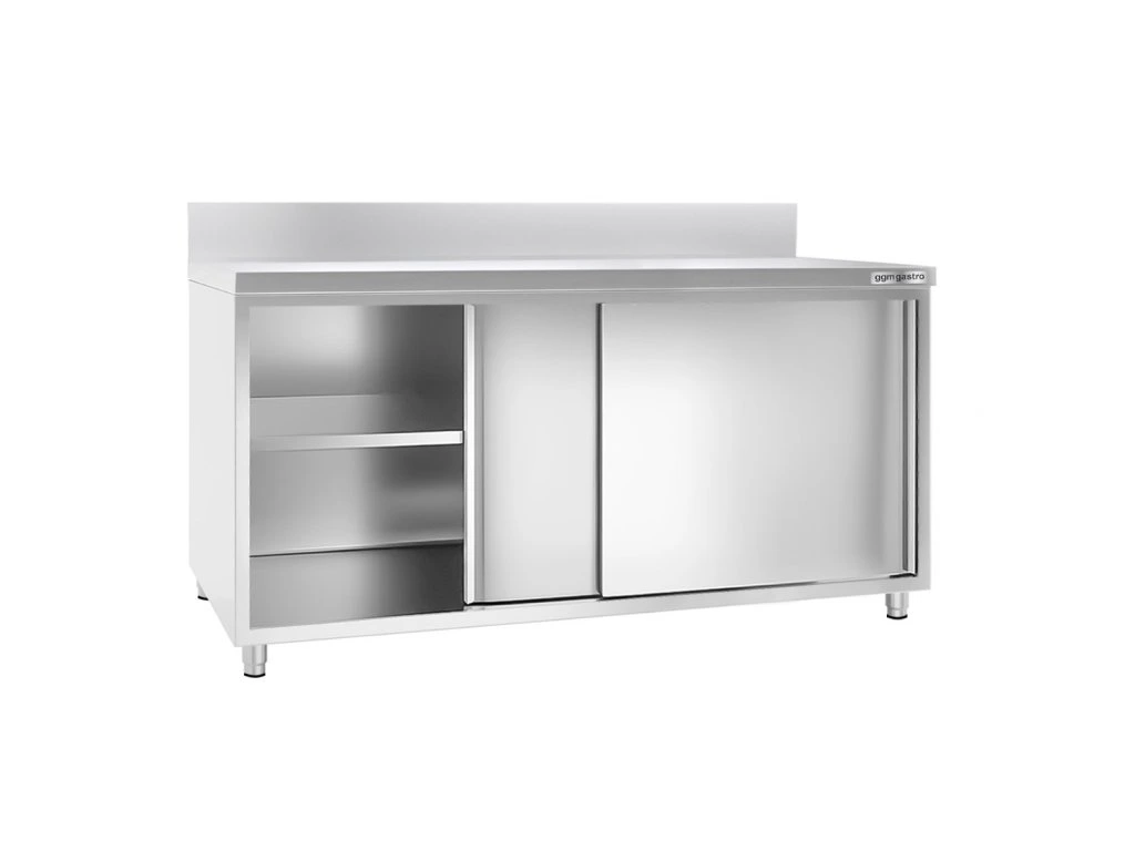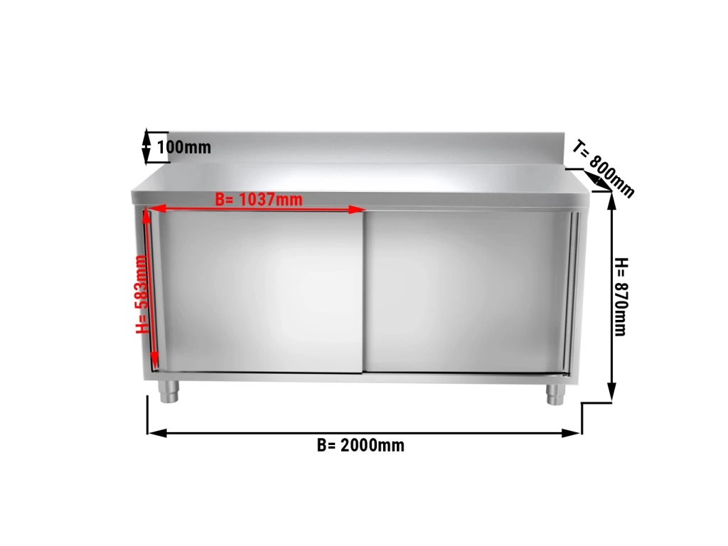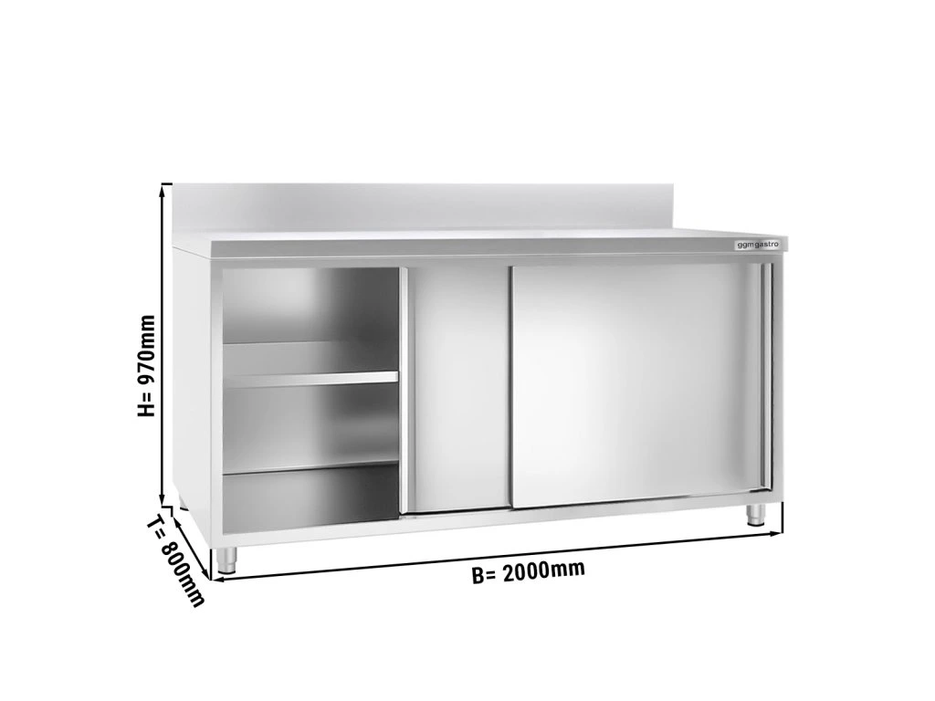 Szafka robocza PREMIUM ze stali nierdzewnej - 2000x800 mm - z przesuwanymi drzwiami & panelem tylnym