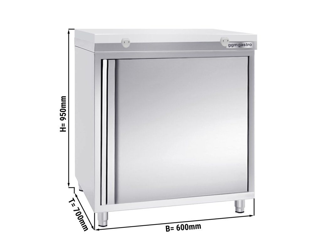 Szafka robocza ze stali nierdzewnej PREMIUM - 600x700 mm - z drzwiami na zawiasach bez panelu tylnego włącznie z płytą do cięcia