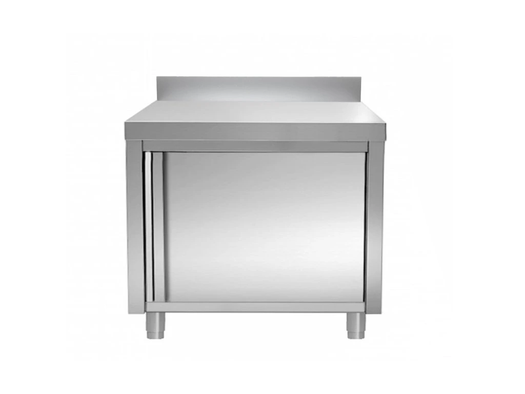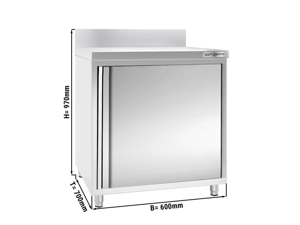 Szafka robocza PREMIUM ze stali nierdzewnej - 600x700 mm - z drzwiami skrzydłowymi & panelem tylnym