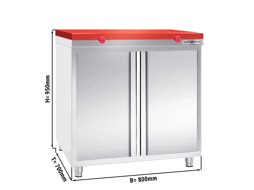 Szafka robocza PREMIUM ze stali nierdzewnej - 800x700 mm - z drzwiami na zawiasach bez panelu tylnego włącznie z płytą do cięcia