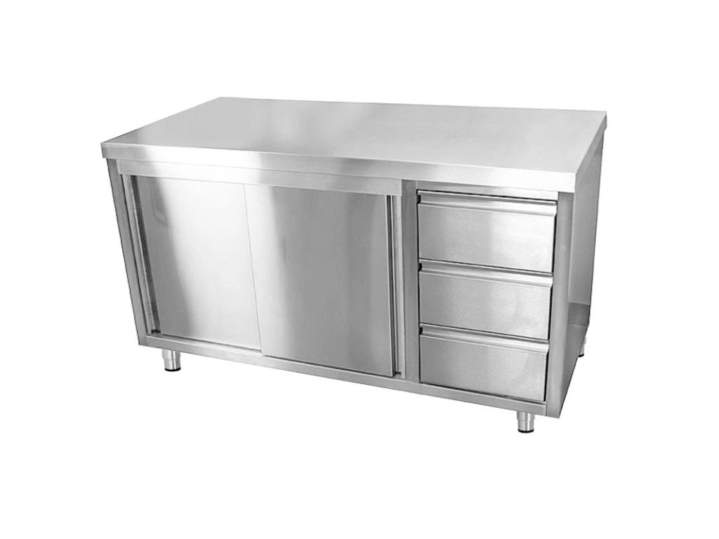 Szafka robocza ze stali nierdzewnej ECO - 1800x600 mm - z 3 szufladami po prawej stronie bez panelu tylnego