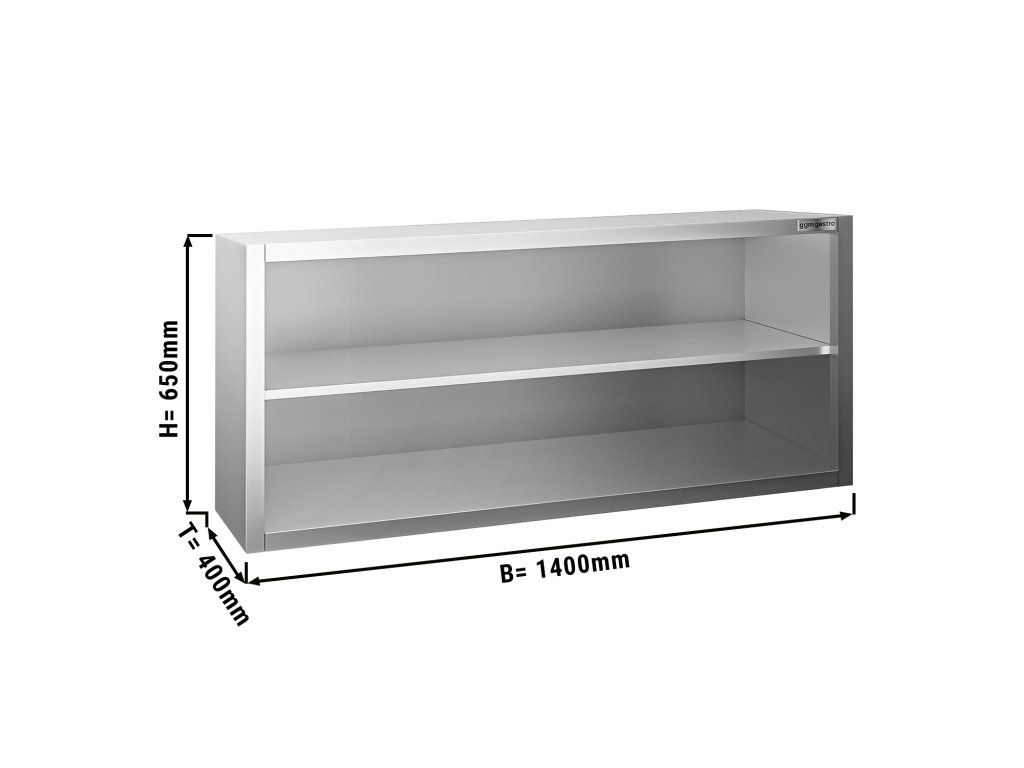 Szafka ścienna PREMIUM ze stali nierdzewnej - 1400x400 mm - bez drzwi przesuwnych - 650 mm wysokości