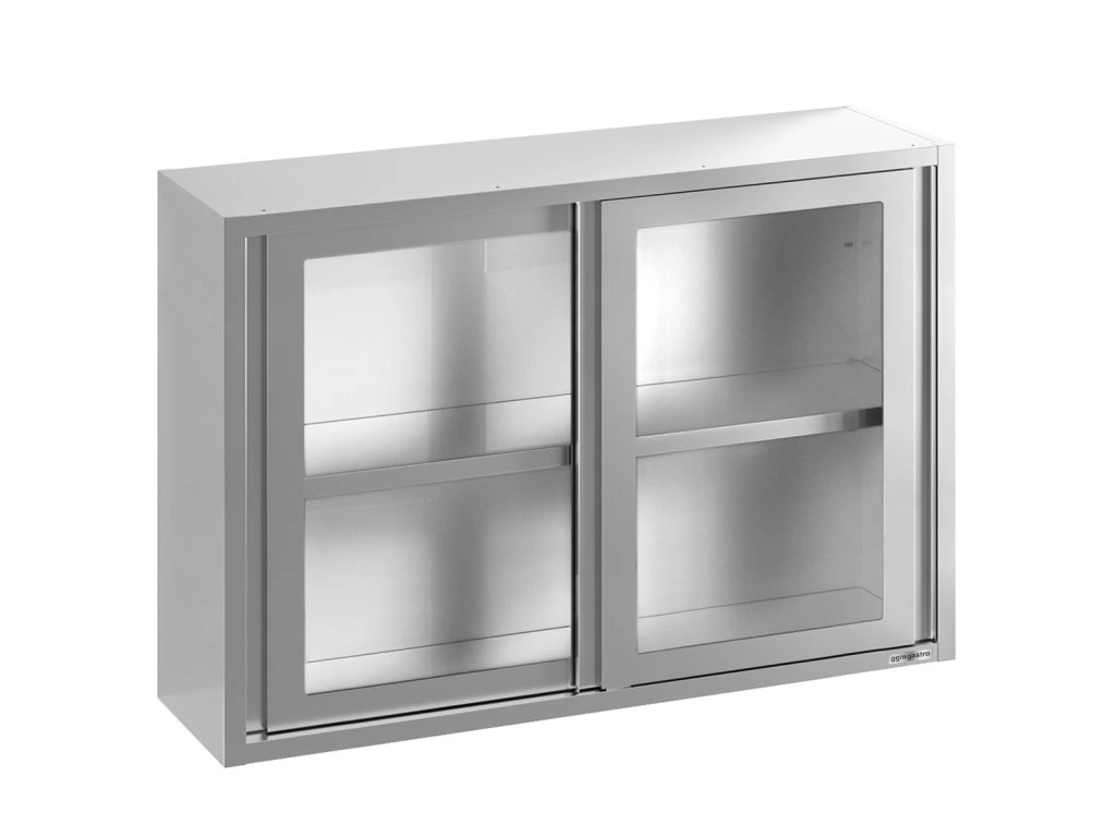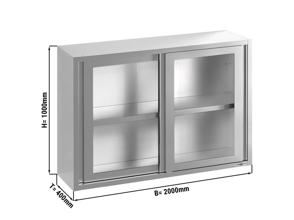 Szafka ścienna ze stali nierdzewnej - 2000x400 mm - z przesuwanymi szklanymi drzwiami - 1000 mm wysokości