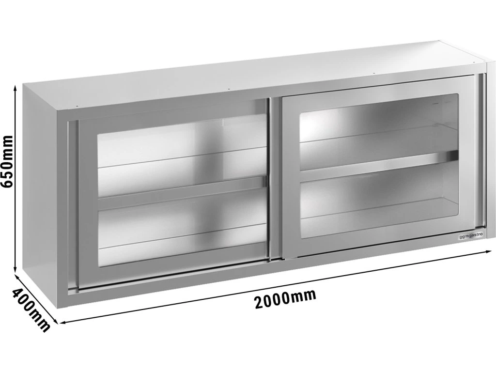 Szafka ścienna ze stali nierdzewnej - 2000x400 mm - z przesuwanymi szklanymi drzwiami - 650 mm wysokości
