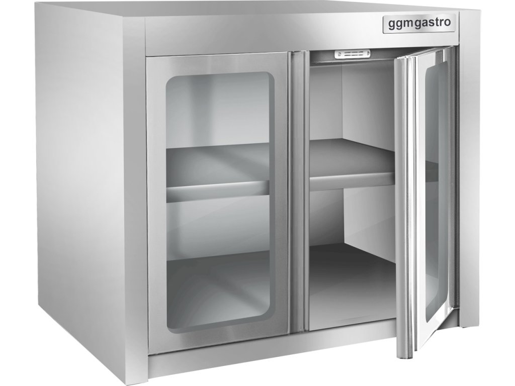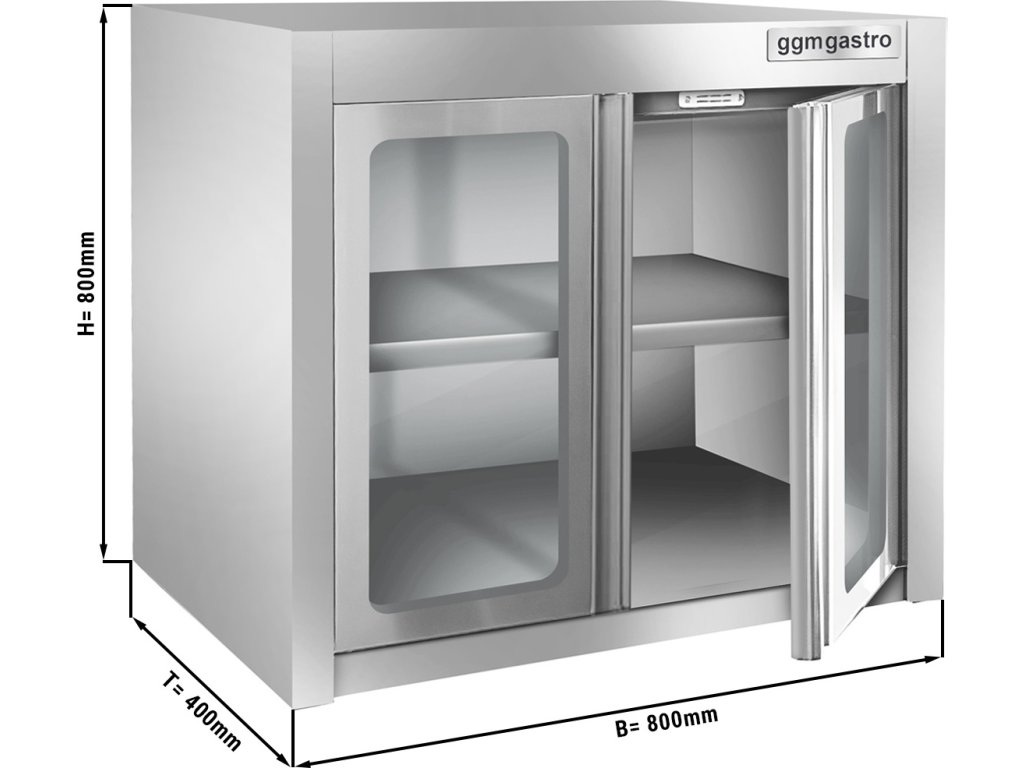 Szafka ścienna ze stali nierdzewnej - 800x400 mm - ze szklanymi drzwiami skrzydłowymi - 800 mm wysokości