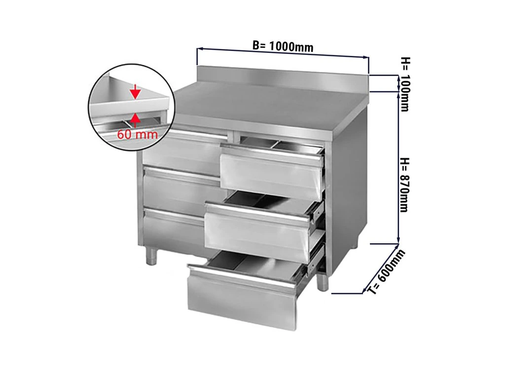 Szafka szufladowa PREMIUM z 6 szufladami & panelem tylnym - 1000x600mm