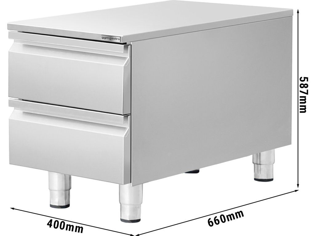 Szafka z szufladami - stal nierdzewna - 400x660mm - 2 szuflady