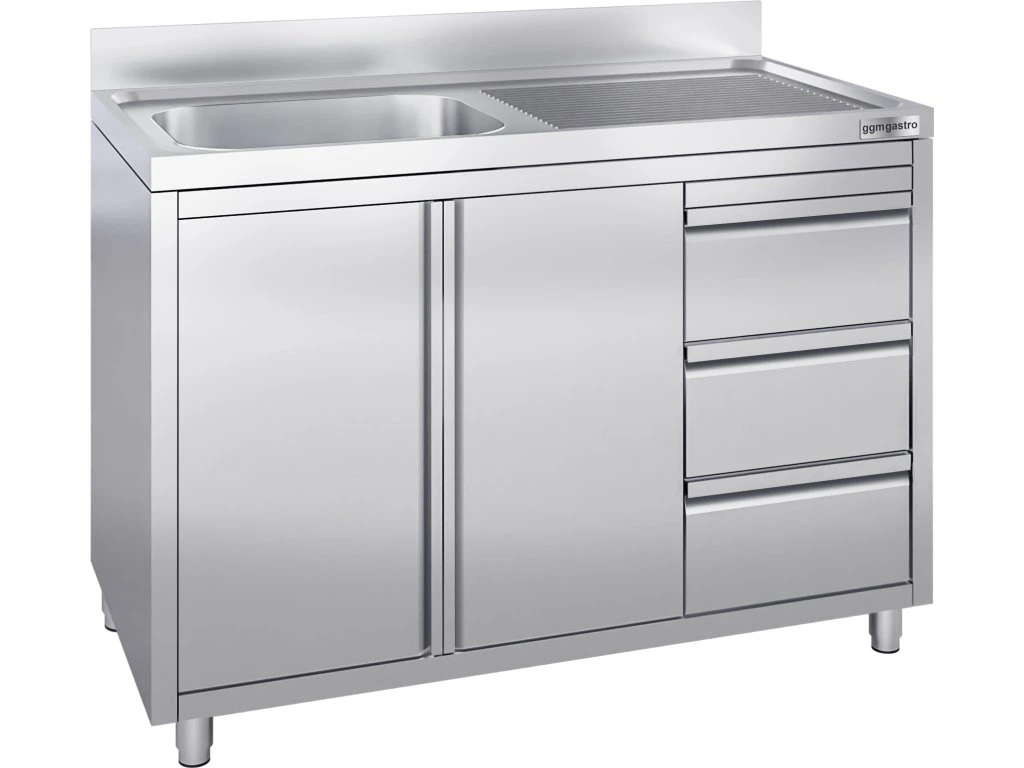 Szafka pod zlewozmywak - 1200x600 mm - z 3 szufladami & 1 zlewem po lewej stronie