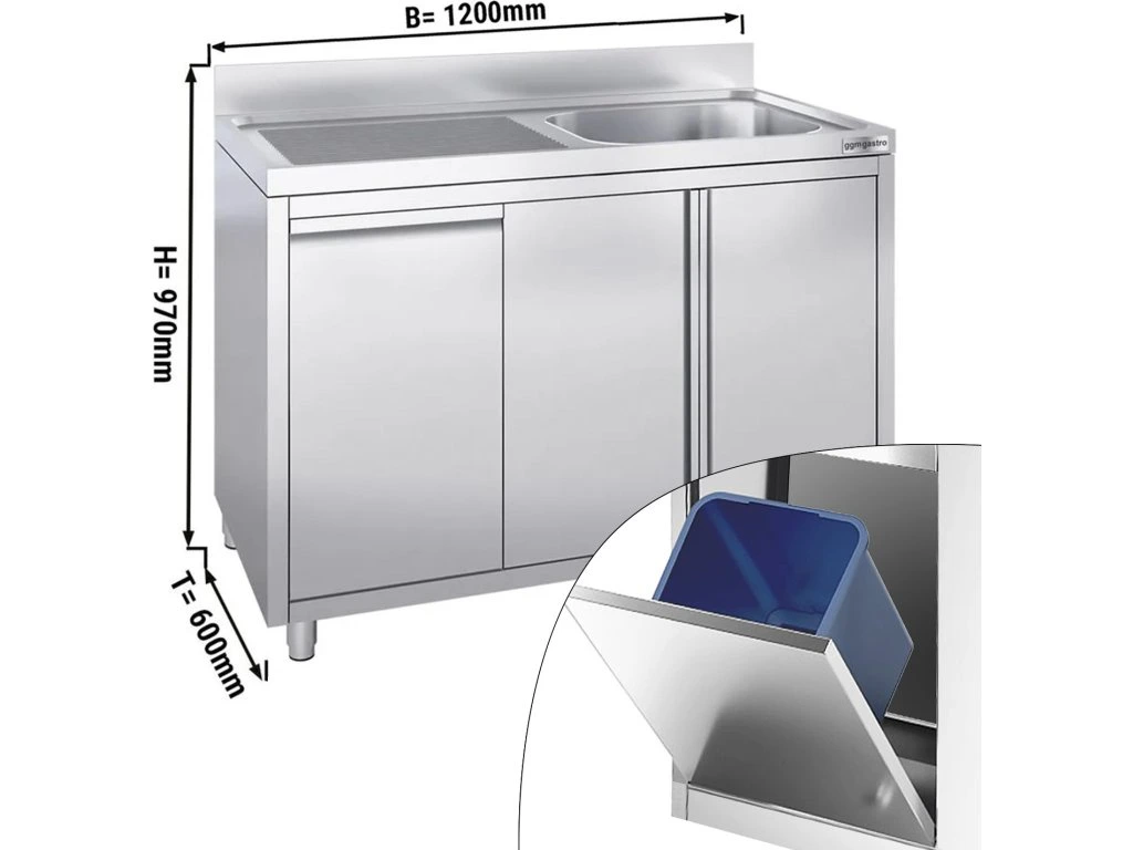 Szafka pod zlewozmywak - 1200x600 mm - z pojemnikiem do odpady & 1 zlewem po prawej stronie