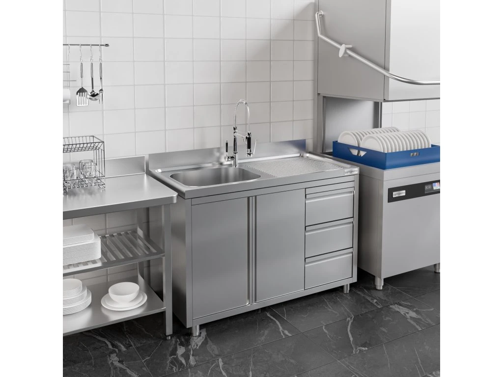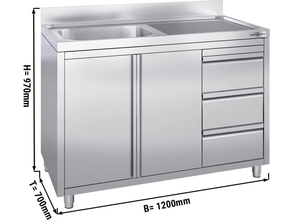 Szafka pod zlewozmywak - 1200x700 mm - z 3 szufladami i 1 zlew po lewej stronie