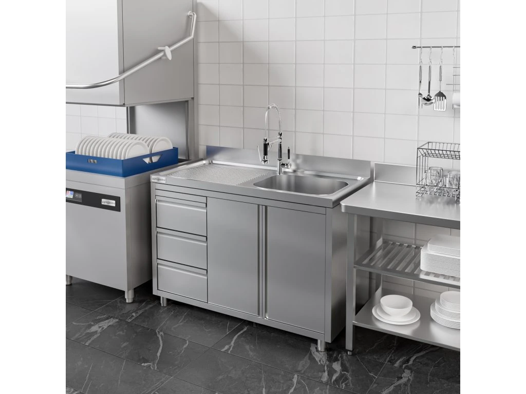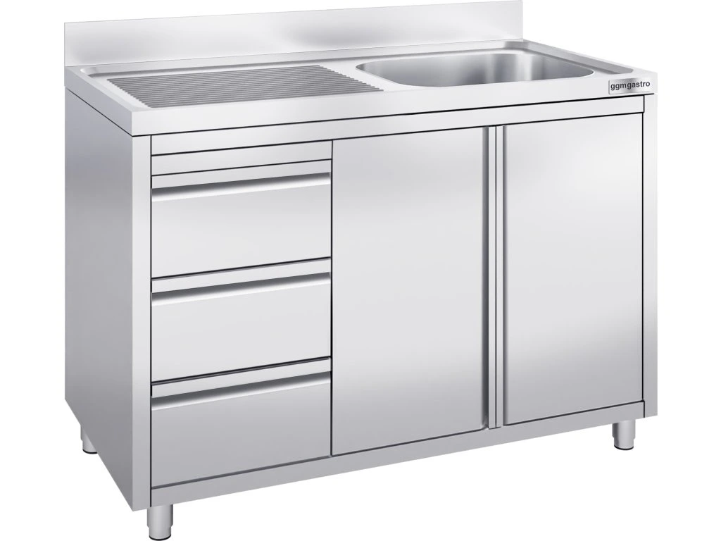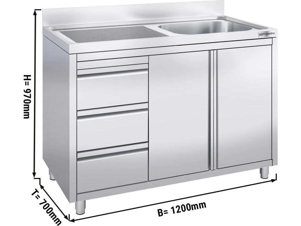 Szafka pod zlewozmywak - 1200x700 mm - z 3 szufladami & 1 zlewem po prawej stronie