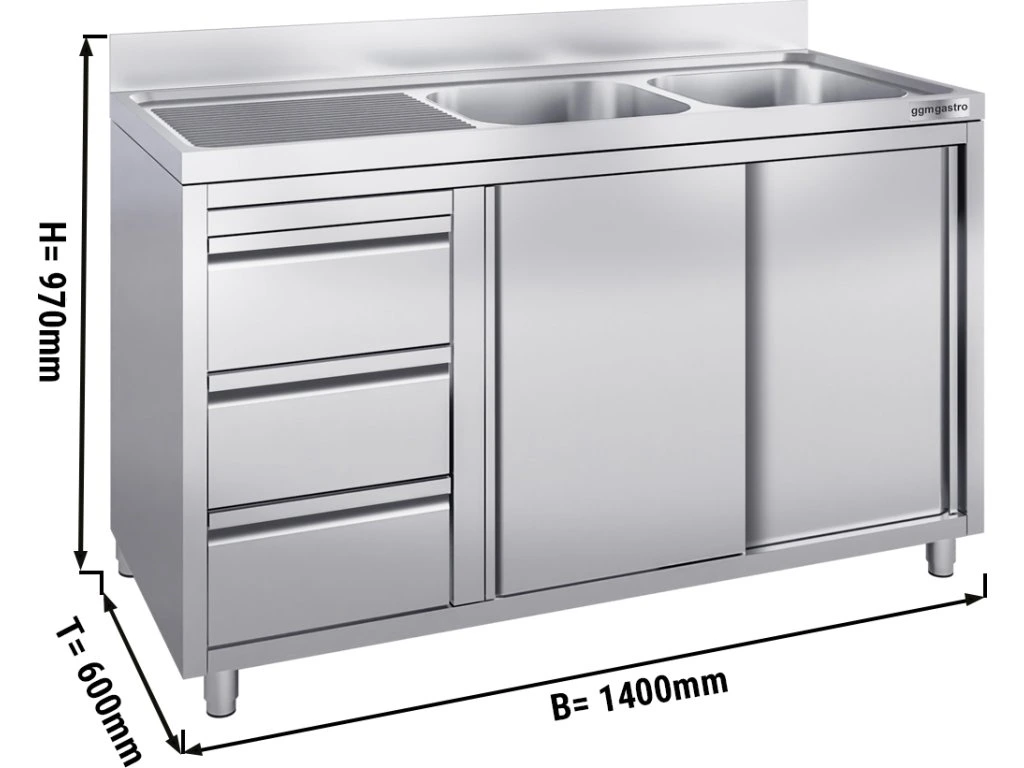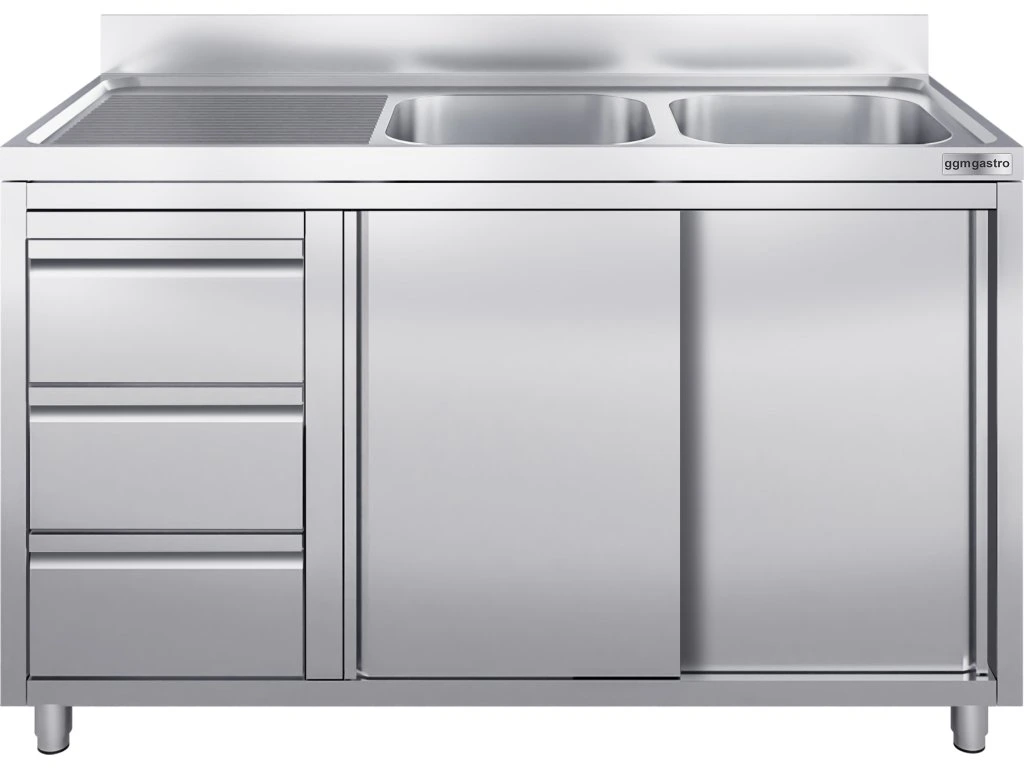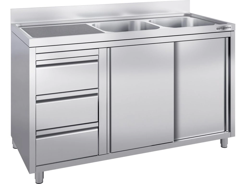 Szafka pod zlewozmywak - 1400x600 mm - z 3 szufladami & 2 zlewami po prawej stronie