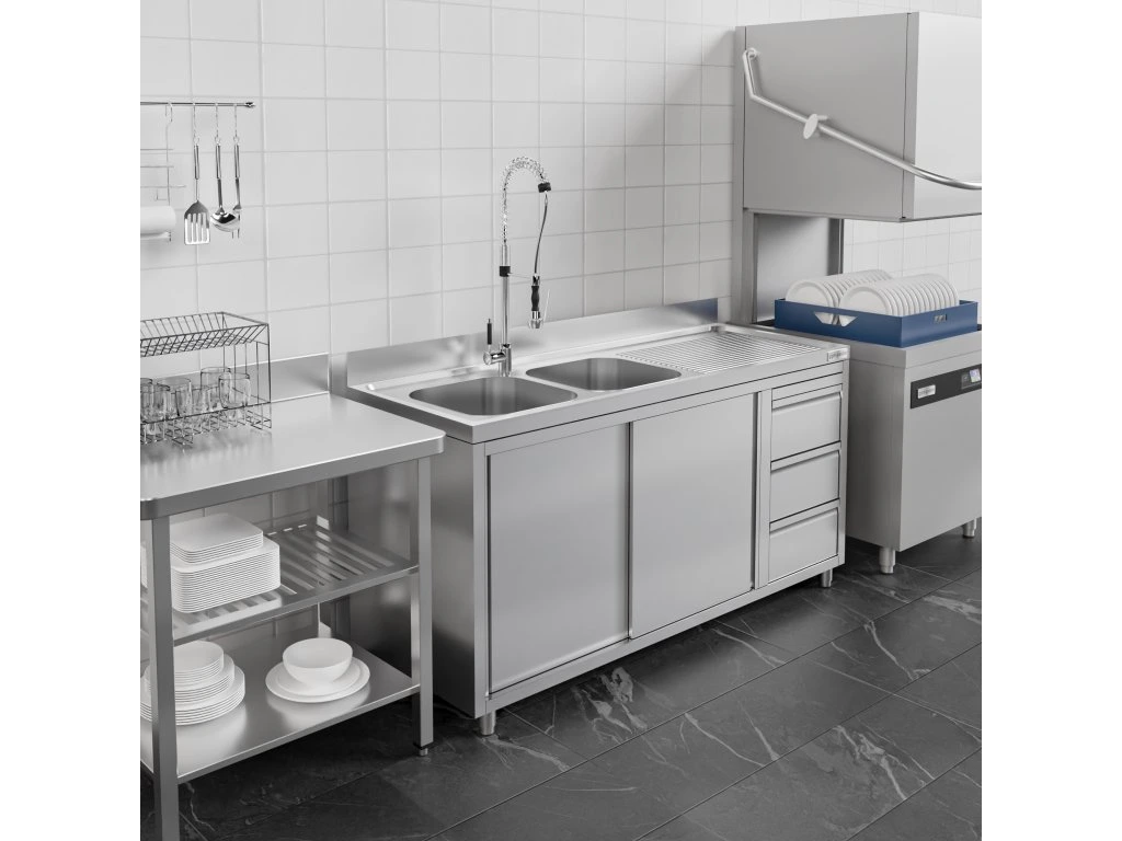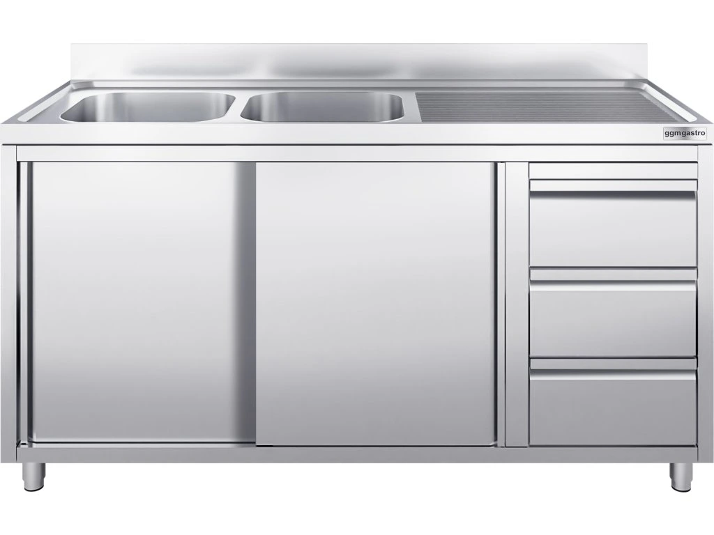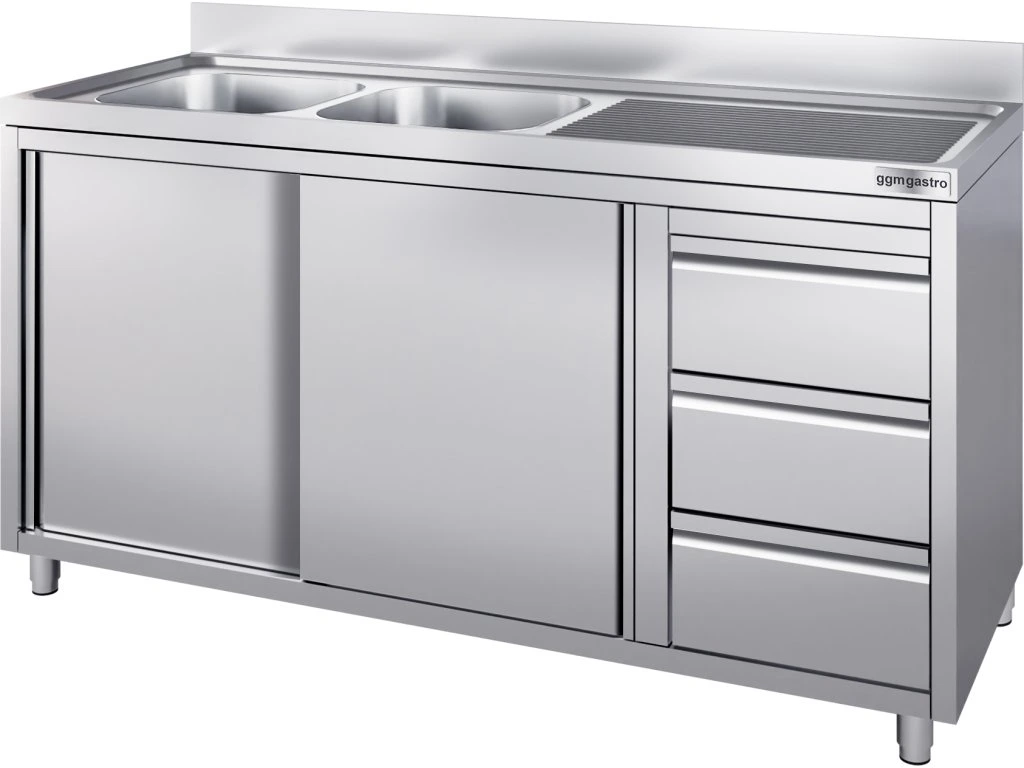 Szafka pod zlewozmywak - 1600x700 mm - z 3 szufladami & 2 zlewami po lewej stronie