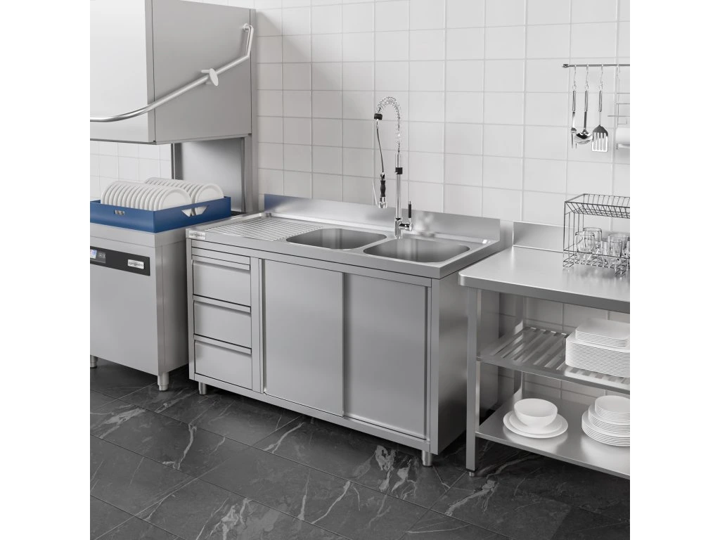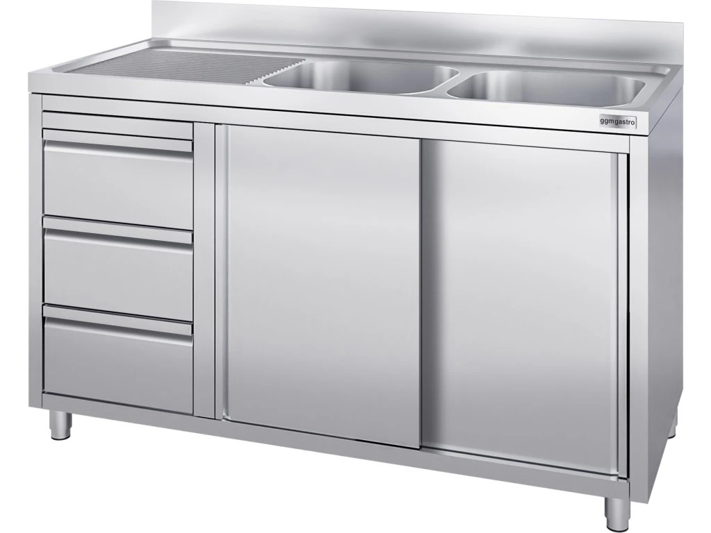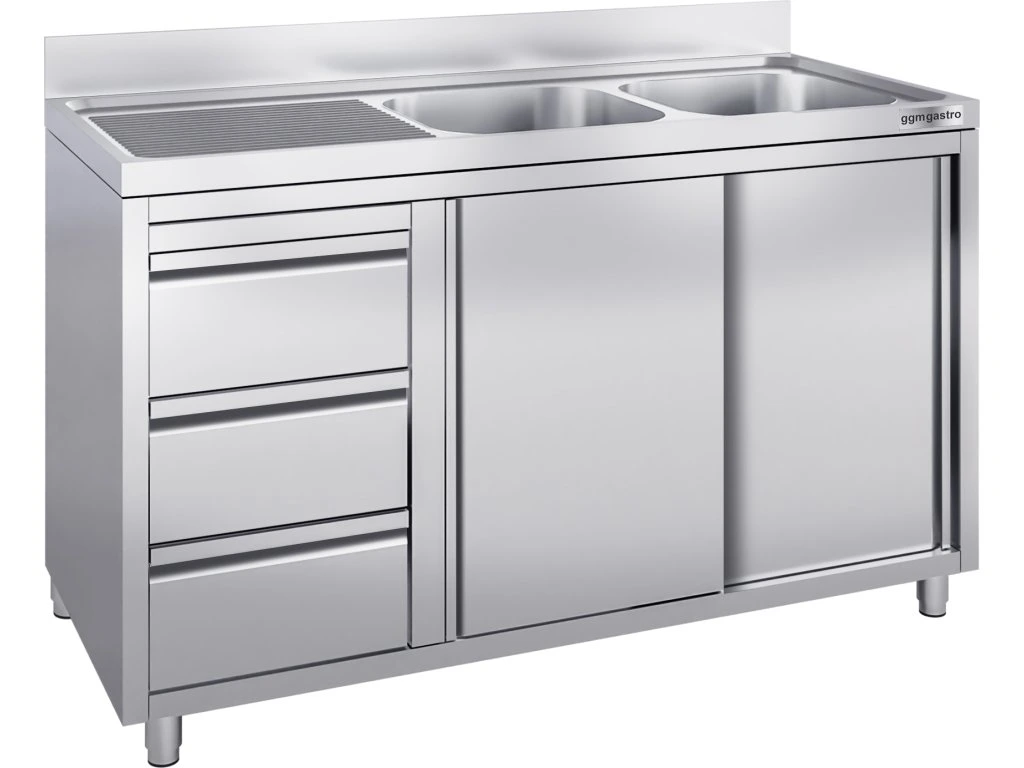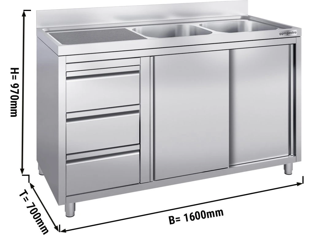 Szafka pod zlewozmywak - 1600x700 mm - z 3 szufladami & 2 zlewami po prawej stronie