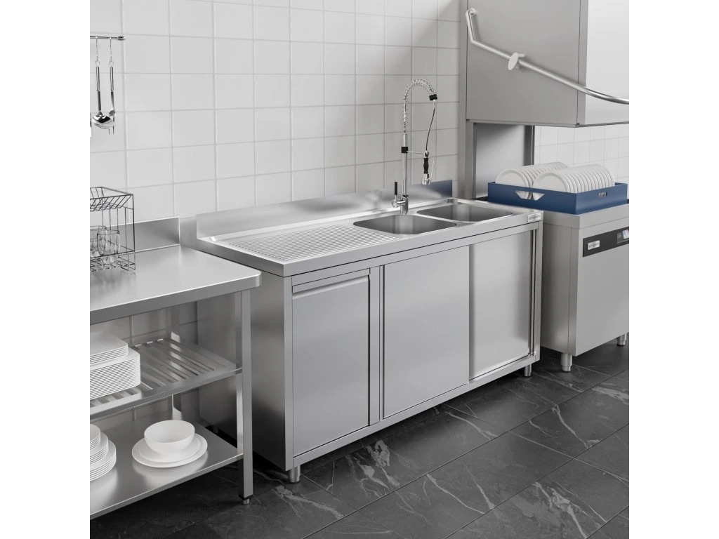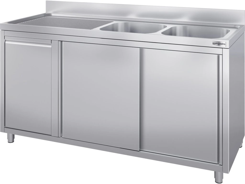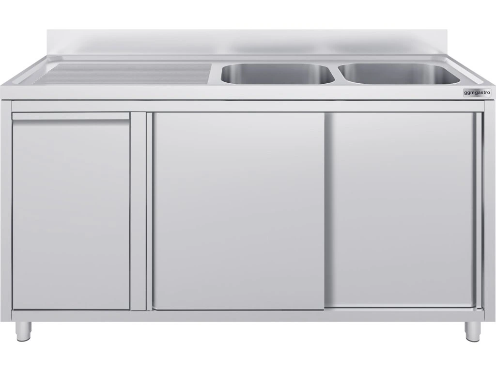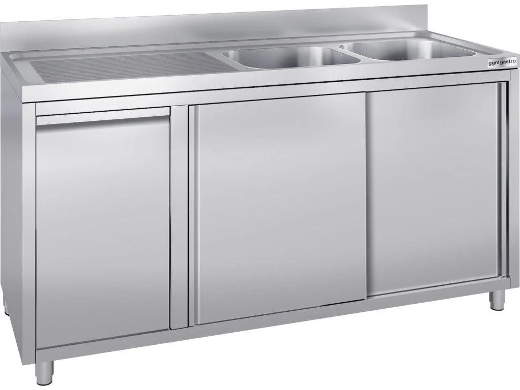 Szafka pod zlewozmywak - 1600x700 mm - z pojemnikiem na odpady & 2 zlewami po prawej stronie