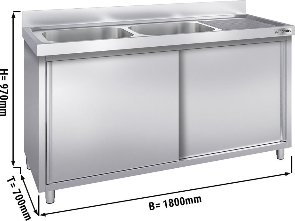 Szafka pod zlewozmywak PREMIUM - 1800x700 mm - z 2 zlewami po lewej stronie
