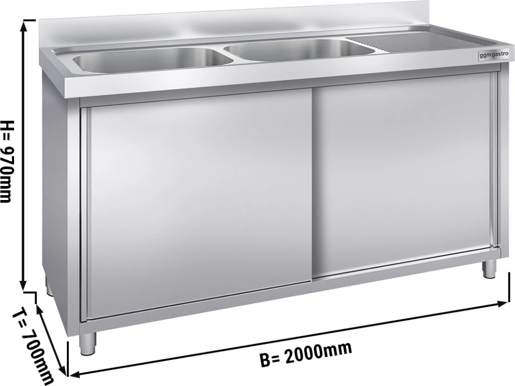 Szafka pod zlewozmywak PREMIUM- 2000x700 mm - z 2 zlewami po lewej stronie