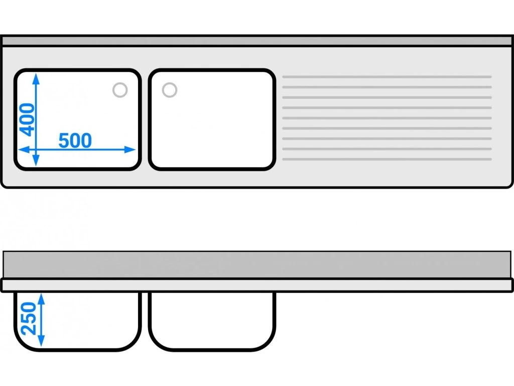 Szafka zlewozmywakowa do zmywarki - 2000x600mm - z 2 zlewami po lewej stronie