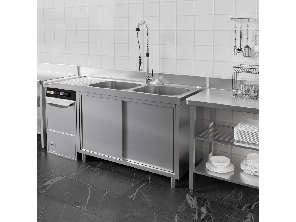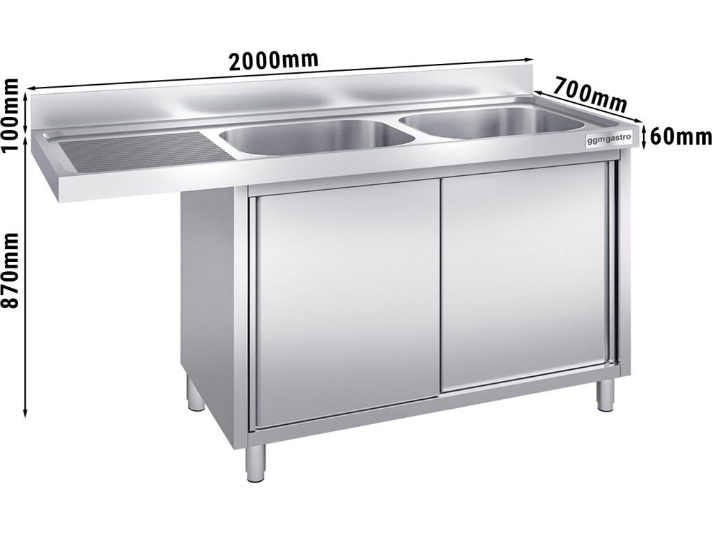 Zlew ze stali nierdzewnej 2,0 m, 2 zlewy po prawej stronie, do zmywarek do zabudowy, gł. 70 cm