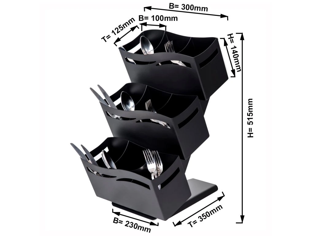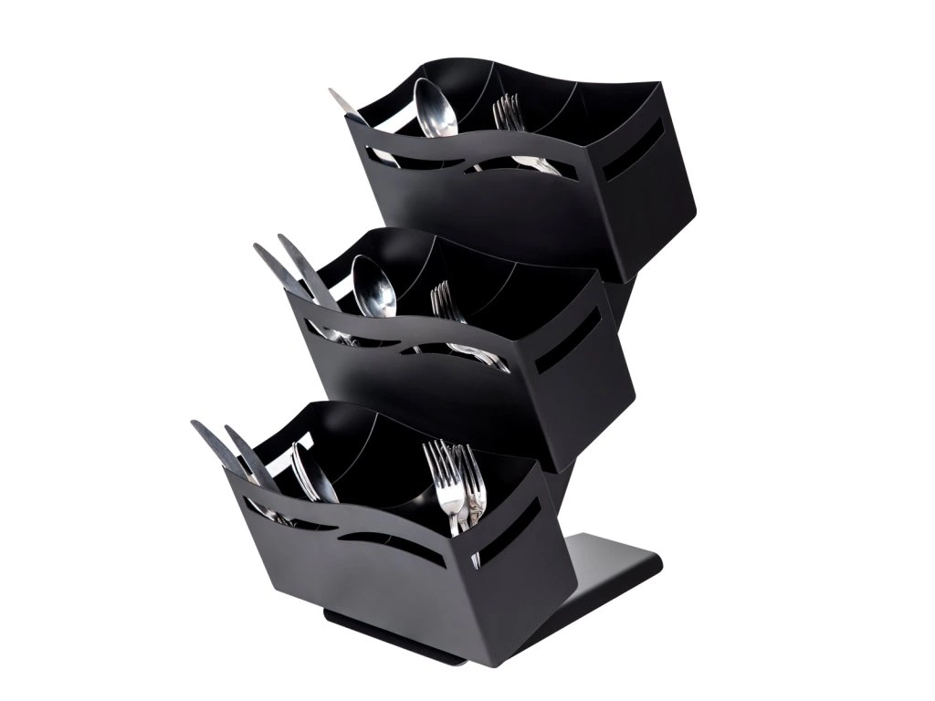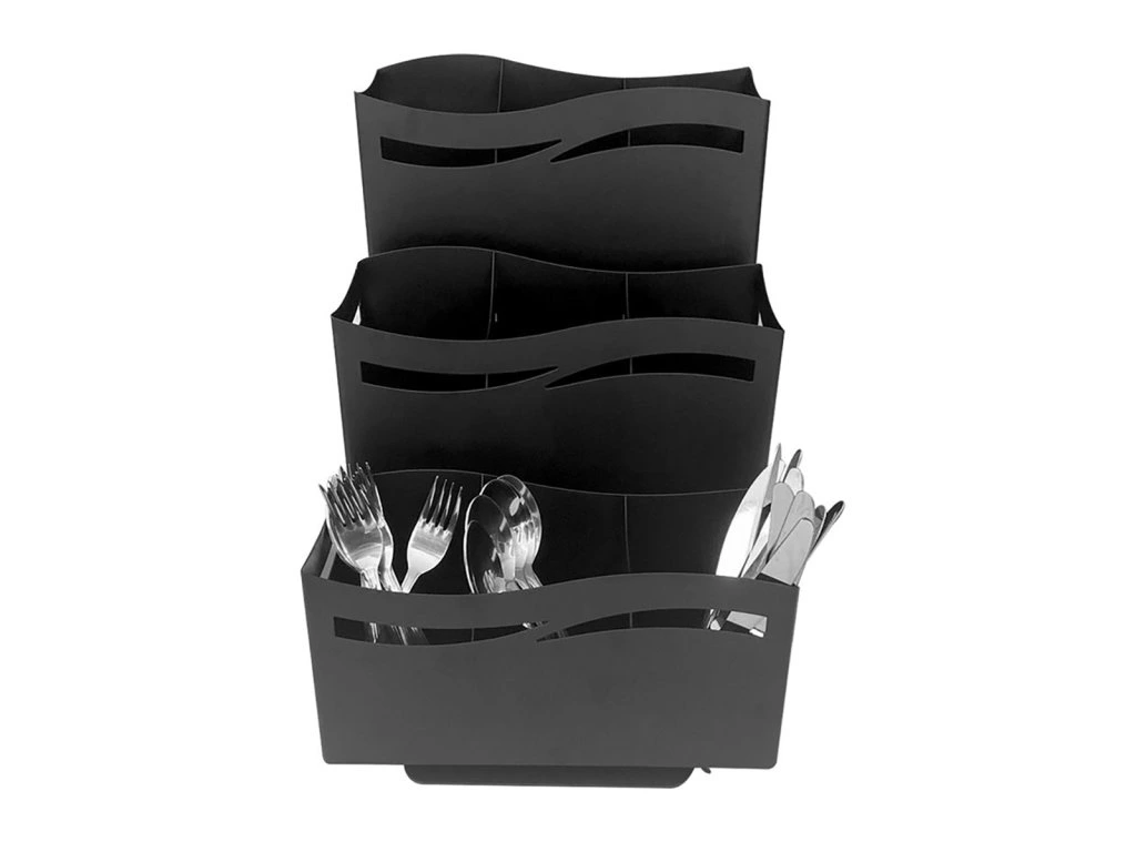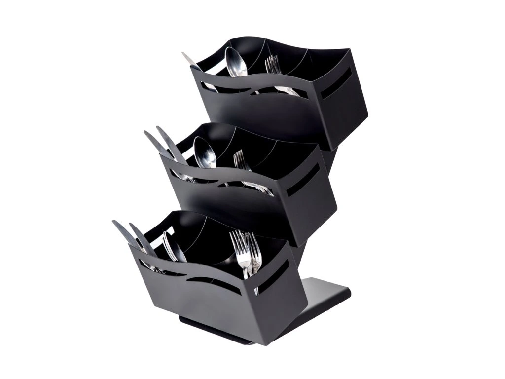 Taca na sztućce - z 3 półkami - czarna