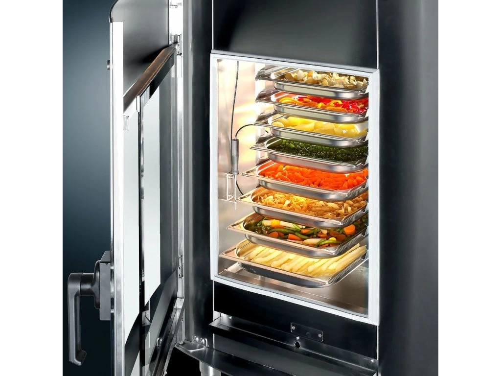 - Programowalna kontrola klimatyzacji w komorze zapewnia doskonałe rezultaty grillowania