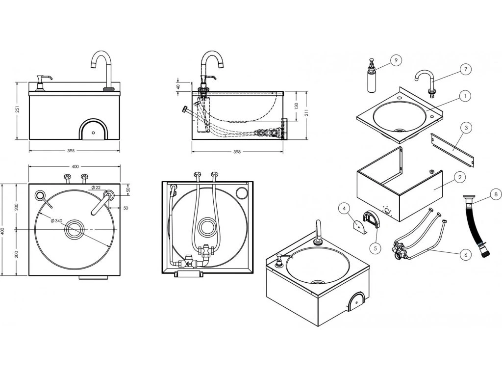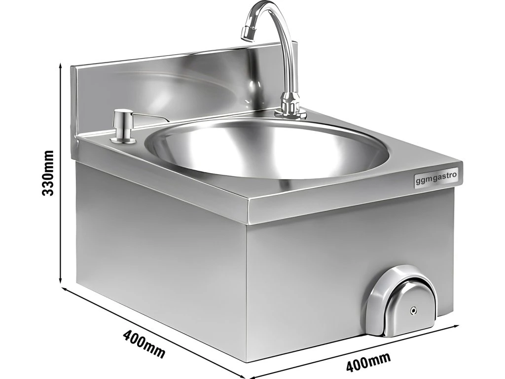 Umywalka 400x400 mm z baterią (podłączenie ciepłej i zimnej wody) i dozownikiem mydła