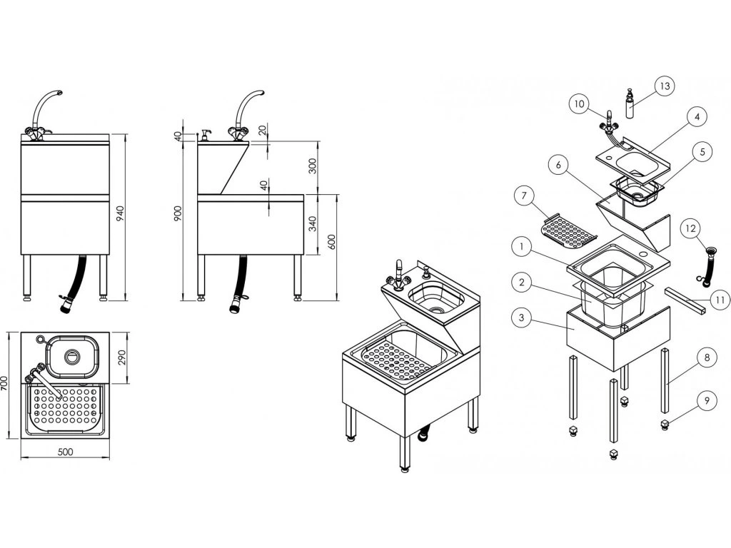 Umywalka do mycia rąk - czyszczenie i płukanie - z dozownikiem mydła