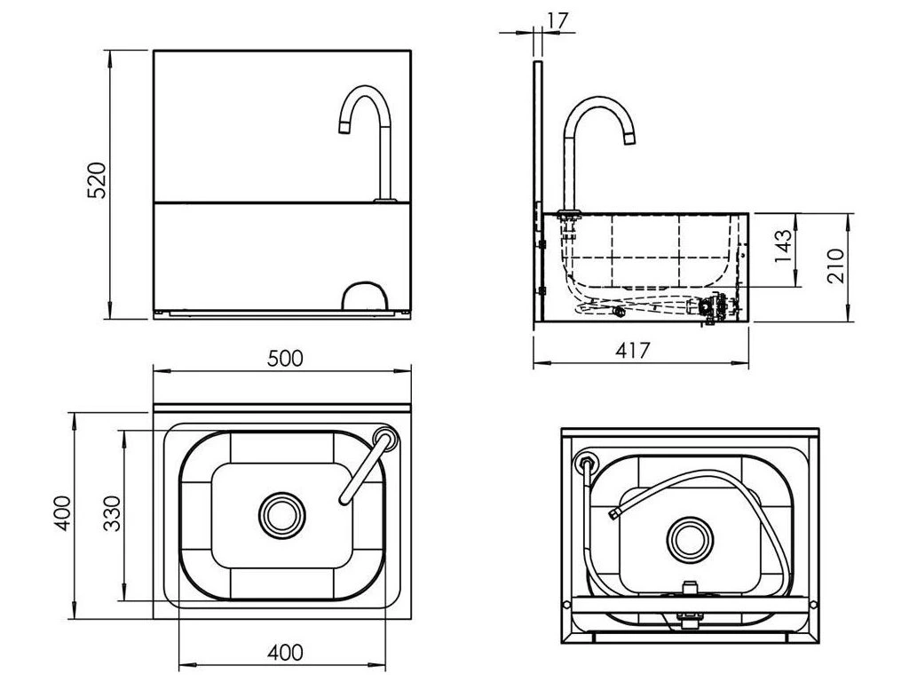 Umywalka 500x400 mm z baterią mieszającą (podłączenie zimnej i ciepłej wody)