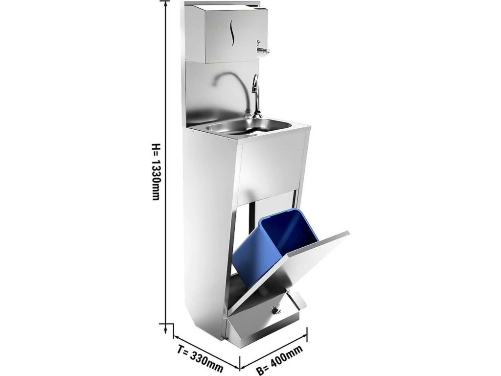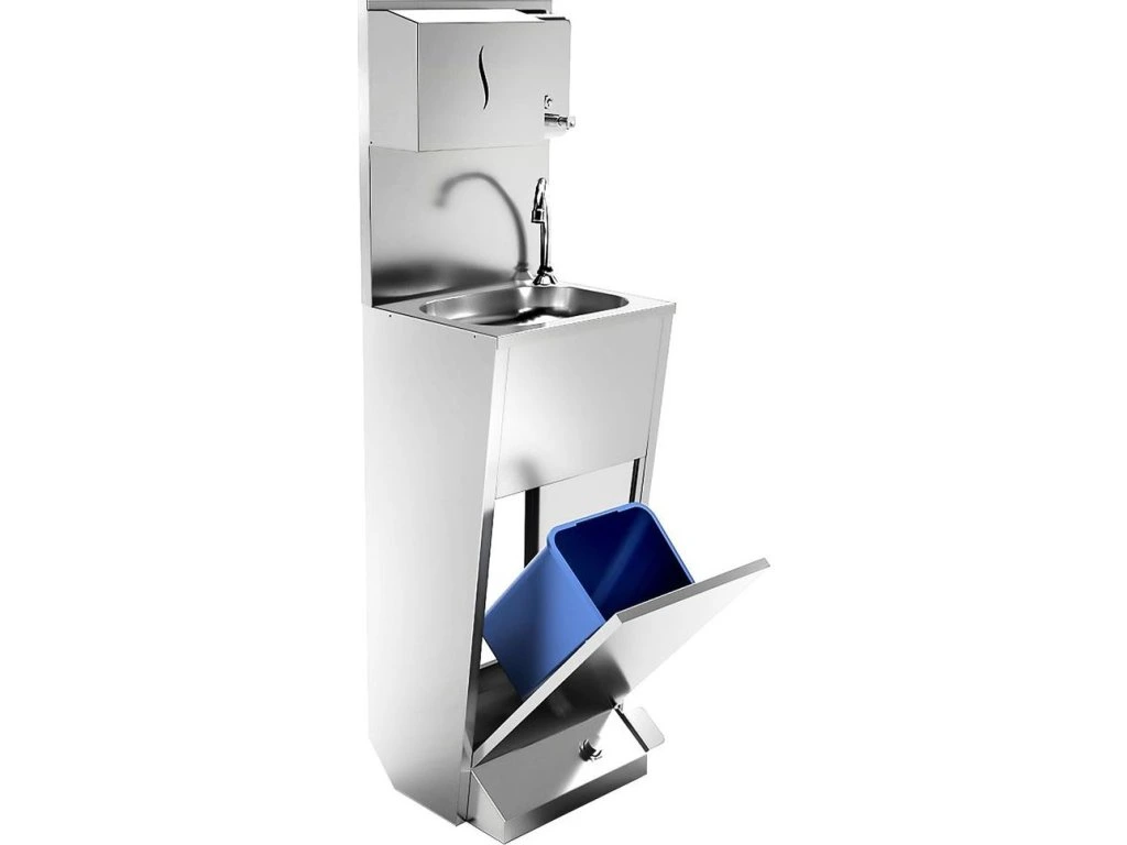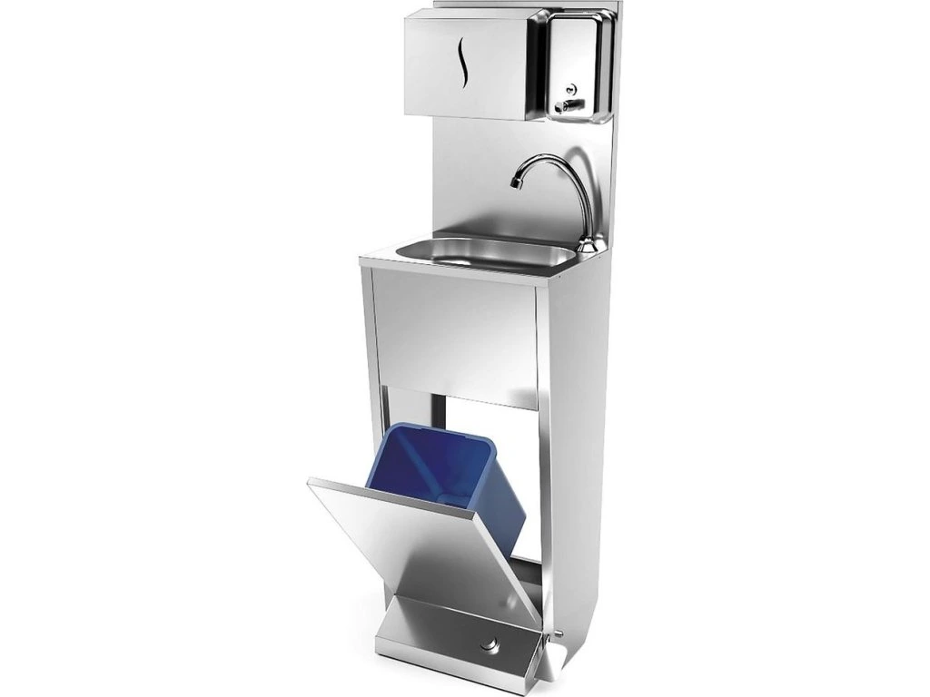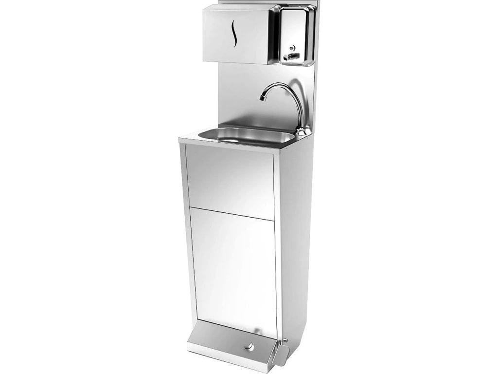 Umywalka do rąk | stanowisko do mycia ze stali nierdzewnej ze sterowaniem nożnym, dozownikiem papieru i mydła