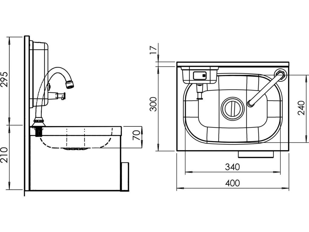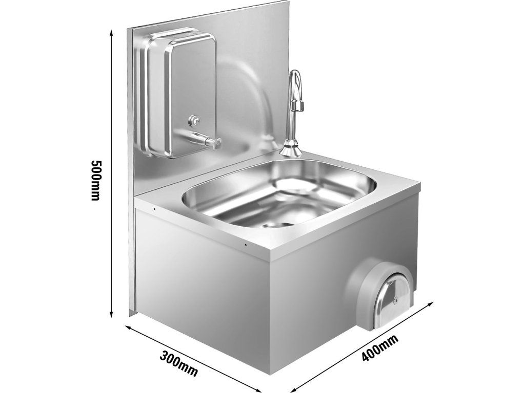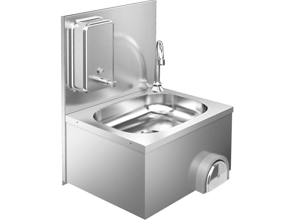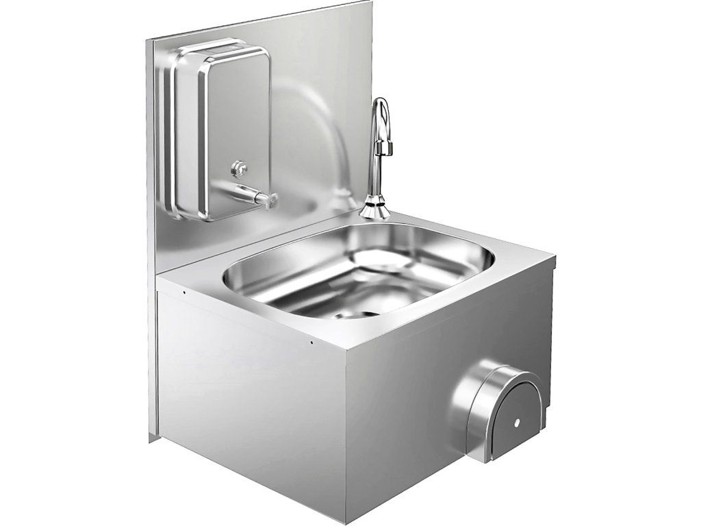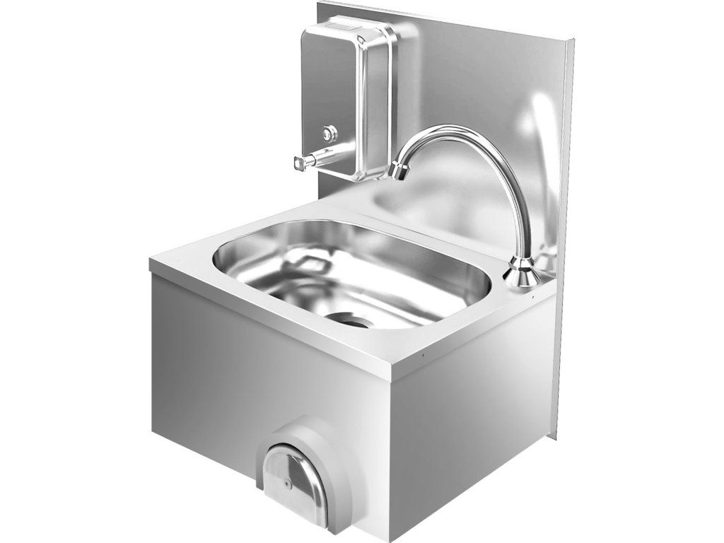 Umywalka ze stali nierdzewnej z regulacją kolanową i dozownikiem mydła