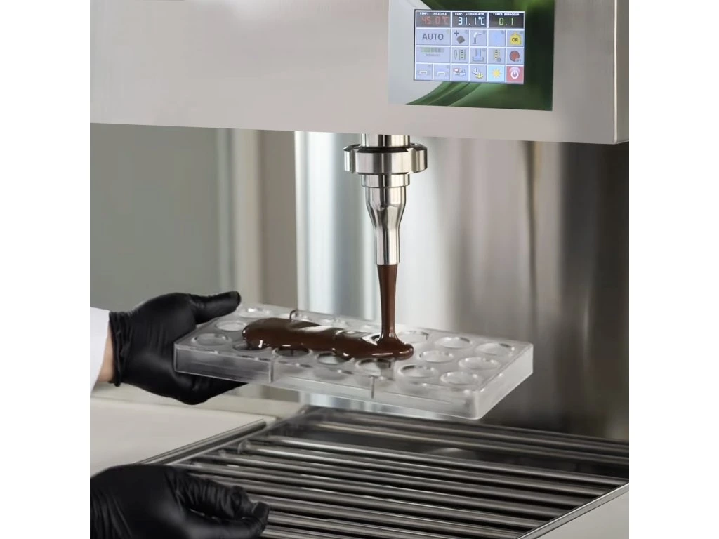 - Urządzenie do kontroli temperatury gwarantuje utrzymanie stanu płynnego czekolady, jak idealny związek krystaliczny
