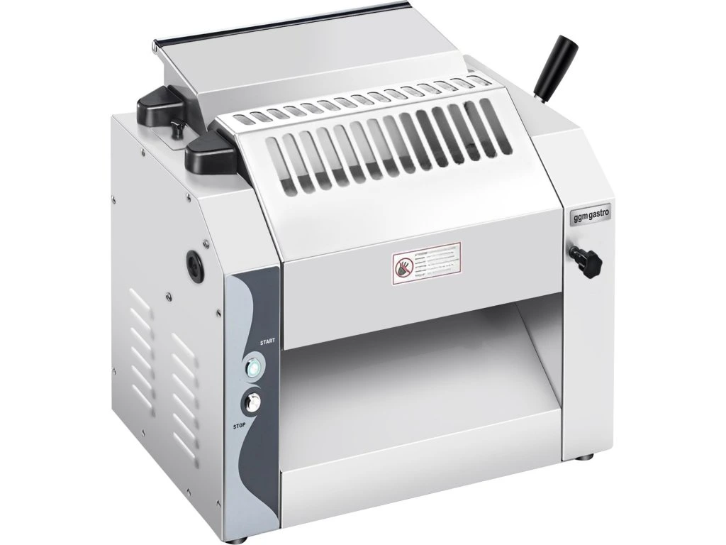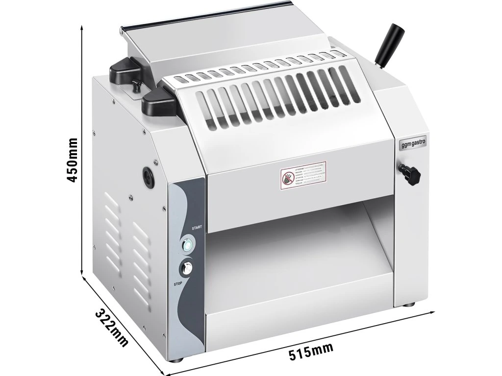 - Pionowa konstrukcja, która zmniejsza przestrzeń wymaganą na powierzchni roboczej i ułatwia chwytanie ciasta przy wylocie.