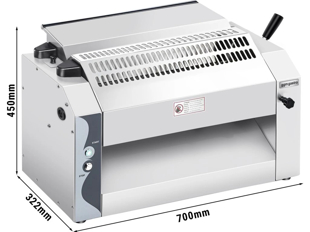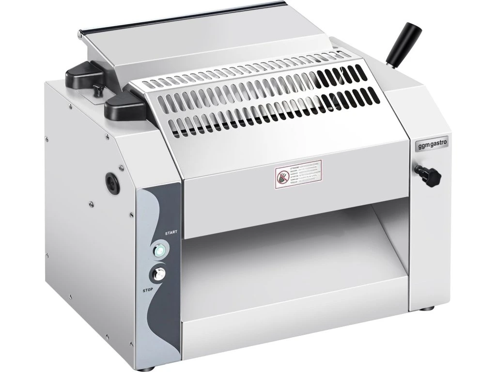 - Pionowa konstrukcja, która zmniejsza przestrzeń wymaganą na powierzchni roboczej i ułatwia chwytanie ciasta przy wylocie.