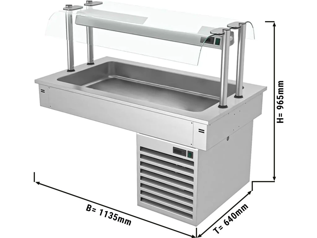 Wanna chłodnicza wbudowana - 1,1m - +2 ~ +8 °C - 3x GN 1/1 - ze szklaną ochroną przed kaszlem