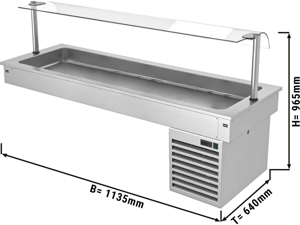 Wanna chłodnicza wbudowana - 1,1m - +2 ~ +8 °C - 3x GN 1/1 - ze szklaną ochroną przed kaszlem