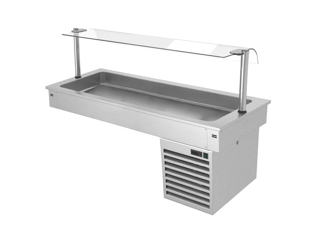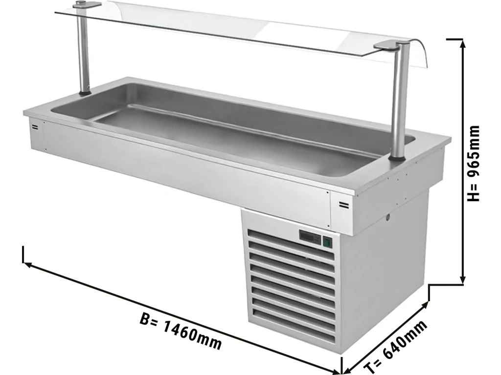 Wanna chłodnicza wbudowana - 1,5m - +2 ~ +8 °C - 4x GN 1/1 - ze szklaną ochroną przed kaszlem