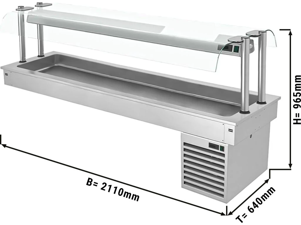 Wanna chłodnicza wbudowana - 2,1m - +2 ~ +8 °C - 6x GN 1/1 - ze szklaną ochroną przed kaszlem
