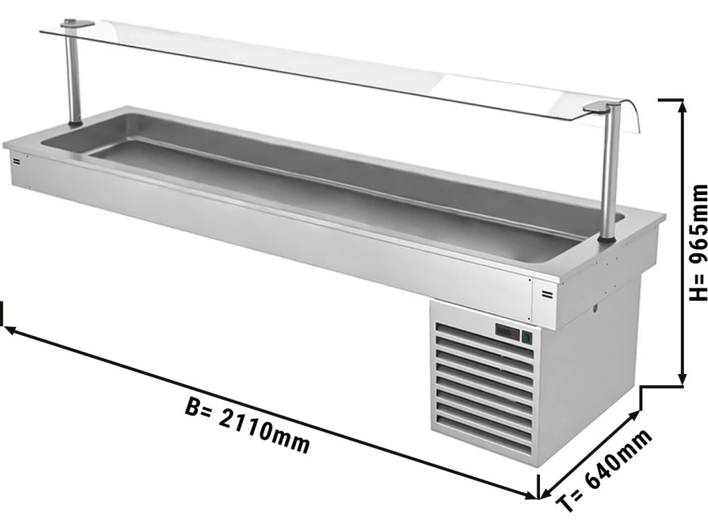 Wanna chłodnicza wbudowana - 2,1m - +2 ~ +8 °C - 6x GN 1/1 - ze szklaną ochroną przed kaszlem