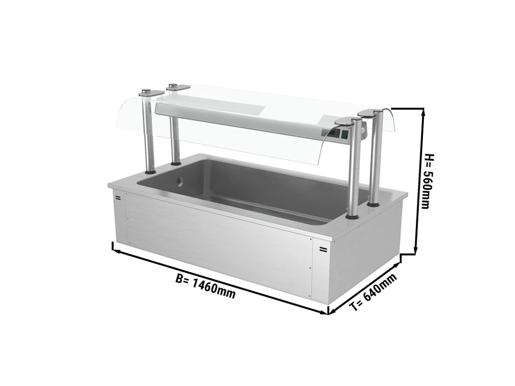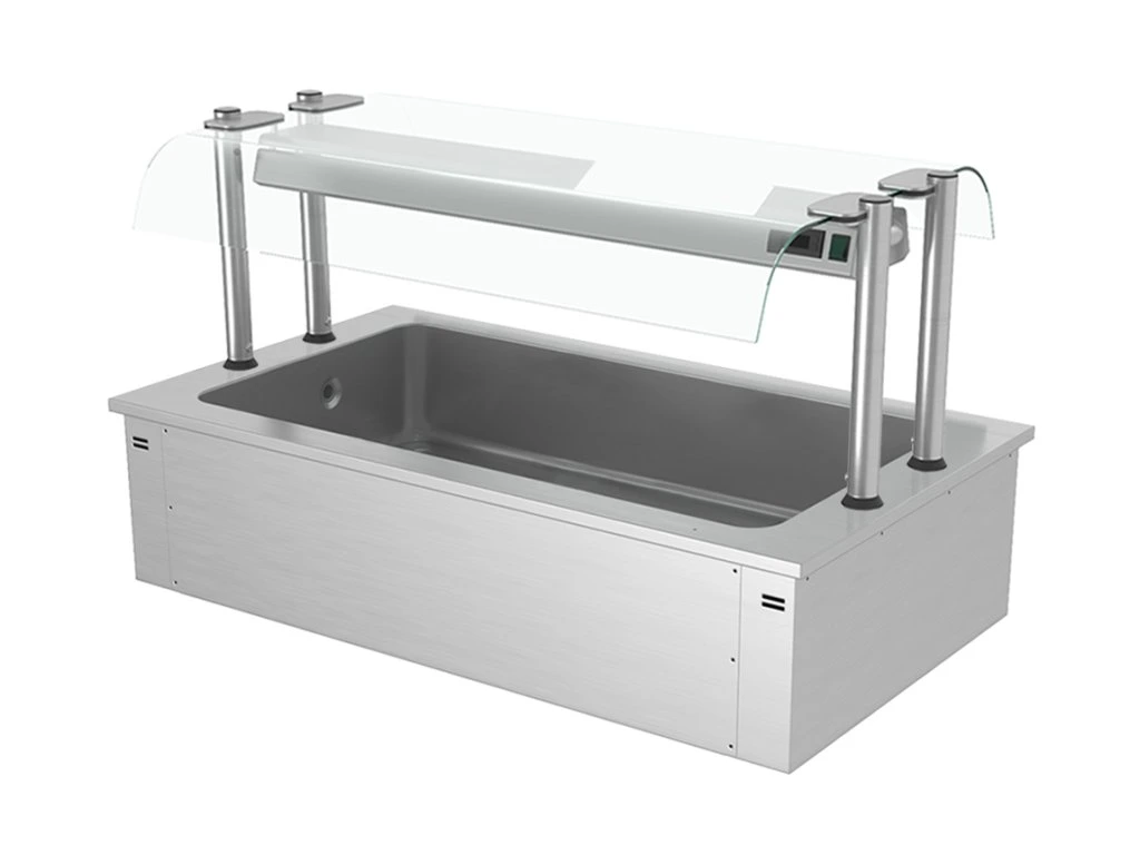Wanna do ekspozycji na lodzie do zabudowy - 1,5m - 4x GN 1/1 - ze szklaną ochroną przed kaszlem