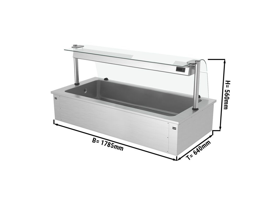 Wanna do ekspozycji na lodzie do zabudowy - 1,8m - 5x GN 1/1 - ze szklaną ochroną przed kaszlem