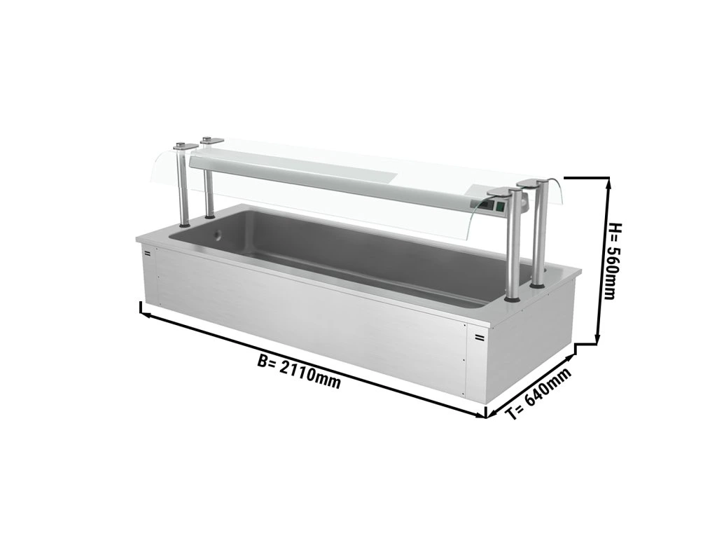 Wanna do ekspozycji na lodzie do zabudowy - 2,1m - 6x GN 1/1 - ze szklaną ochroną przed kaszlem