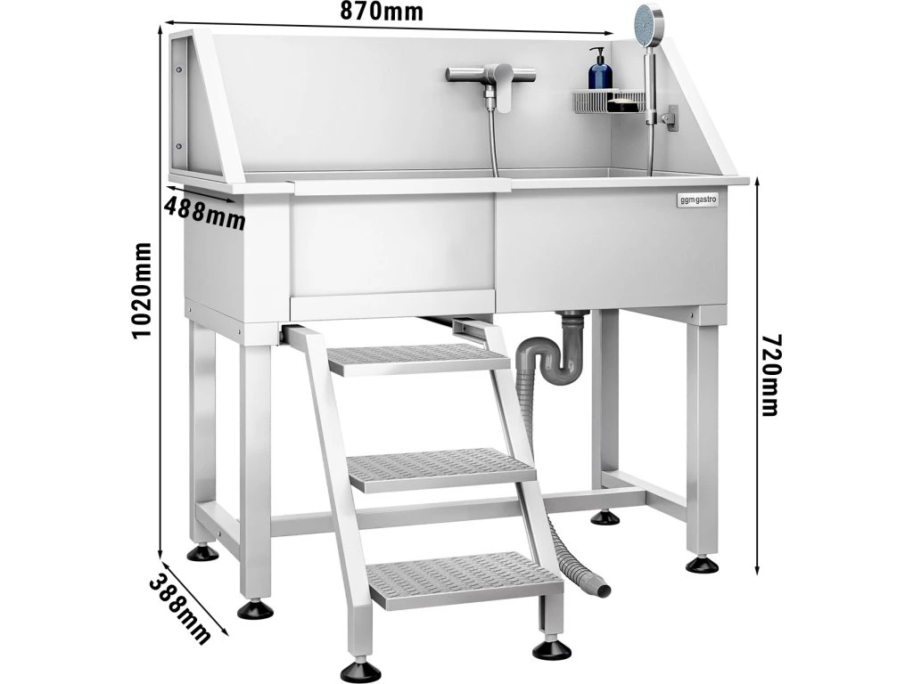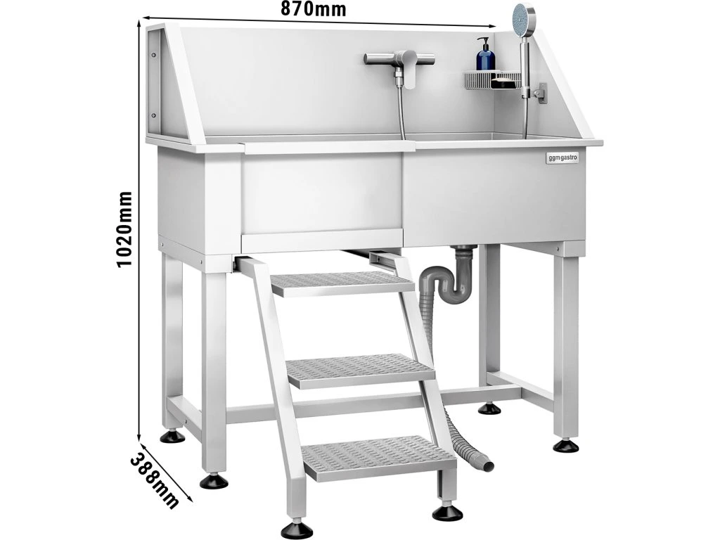 Wanna do pielęgnacji zwierząt - ze stopniami, kranem i matą antypoślizgową